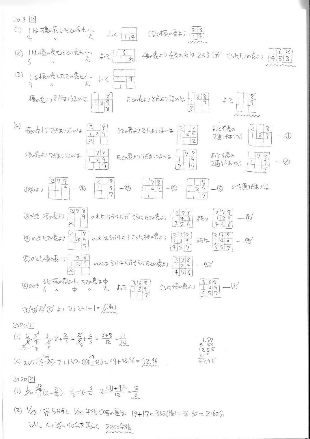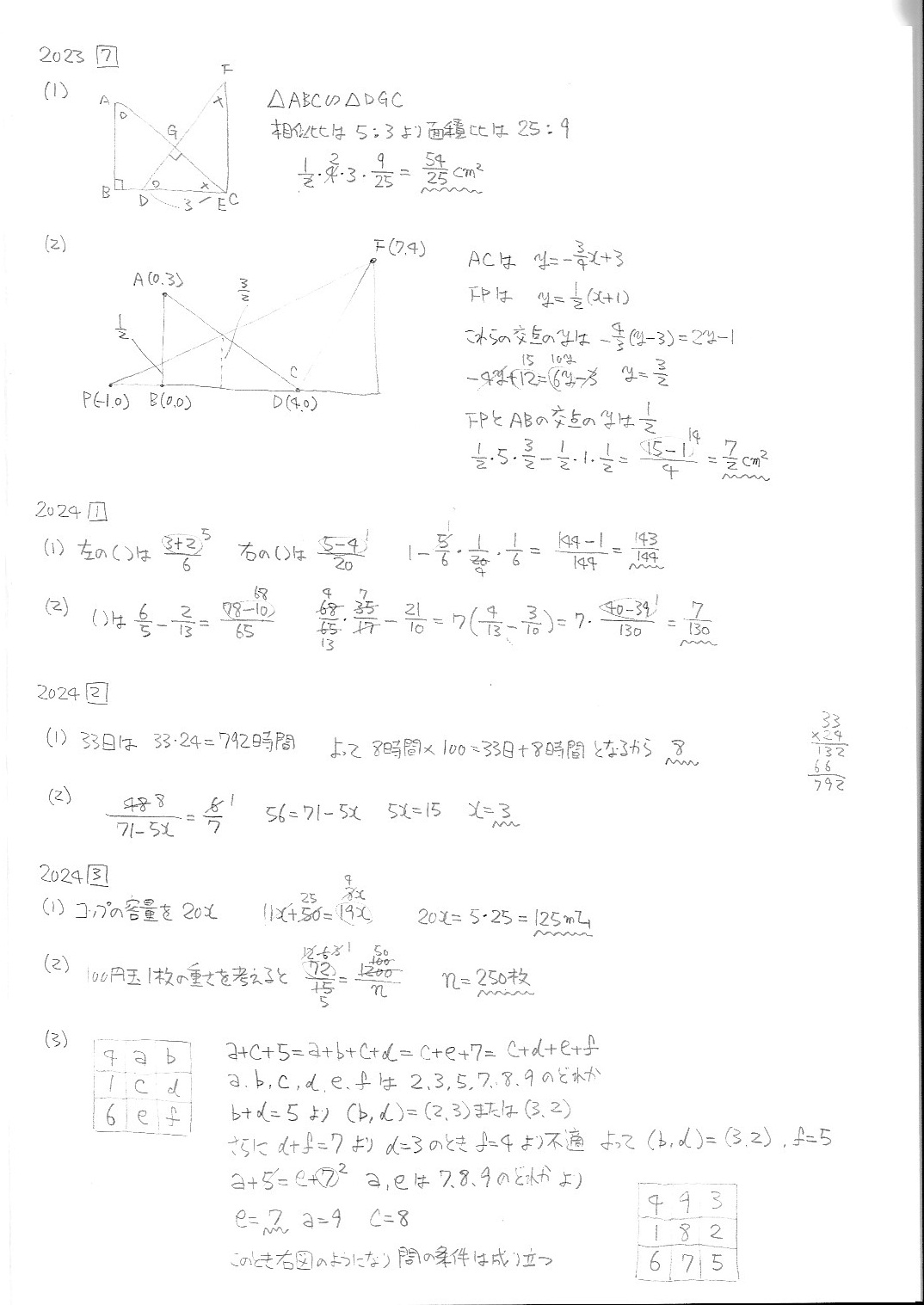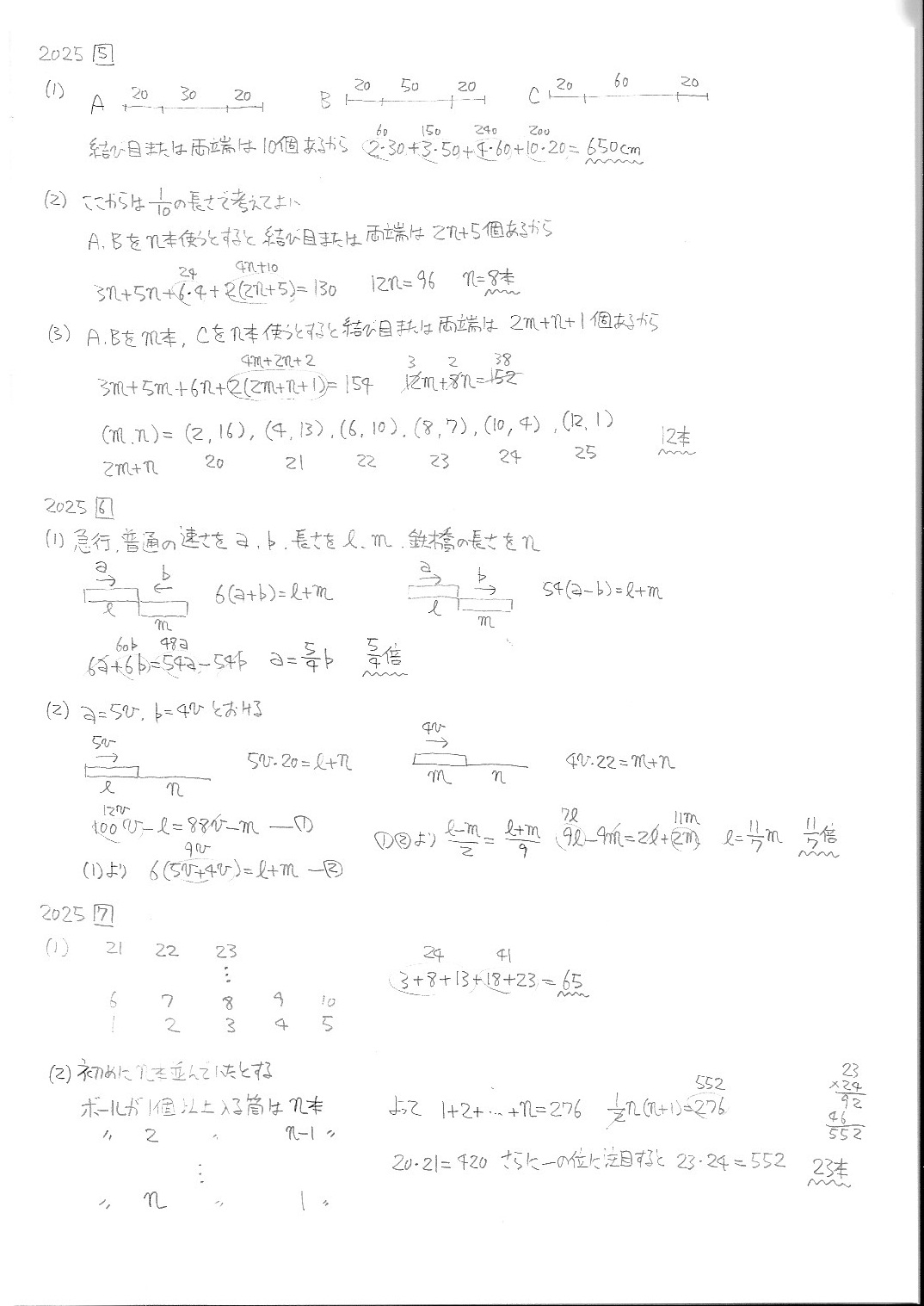 智辯学園和歌山中学校・前期・算数・2019年〜2025年