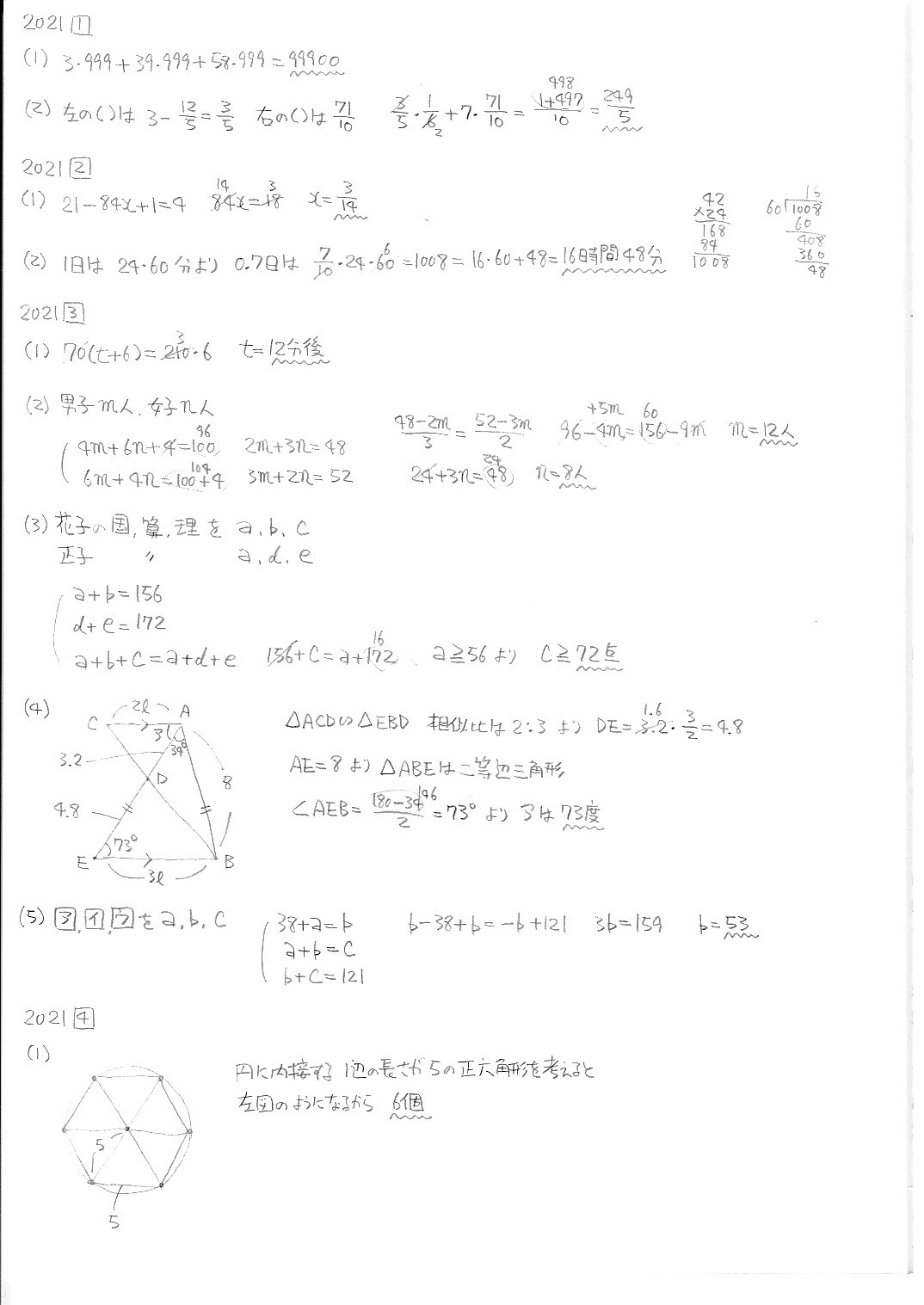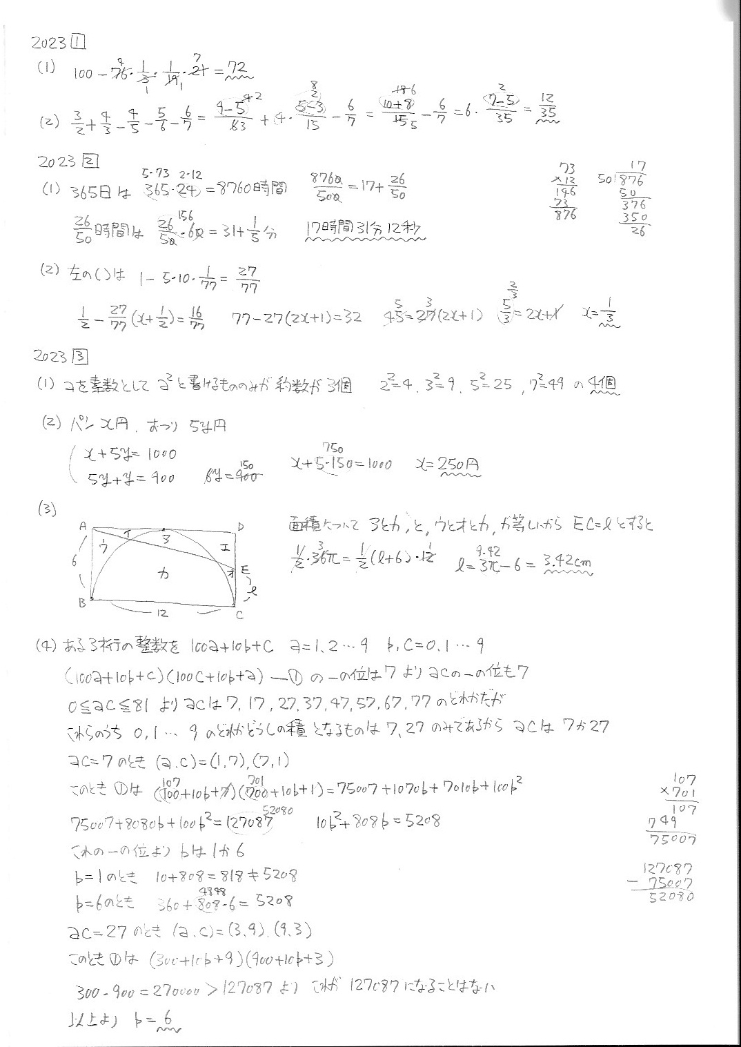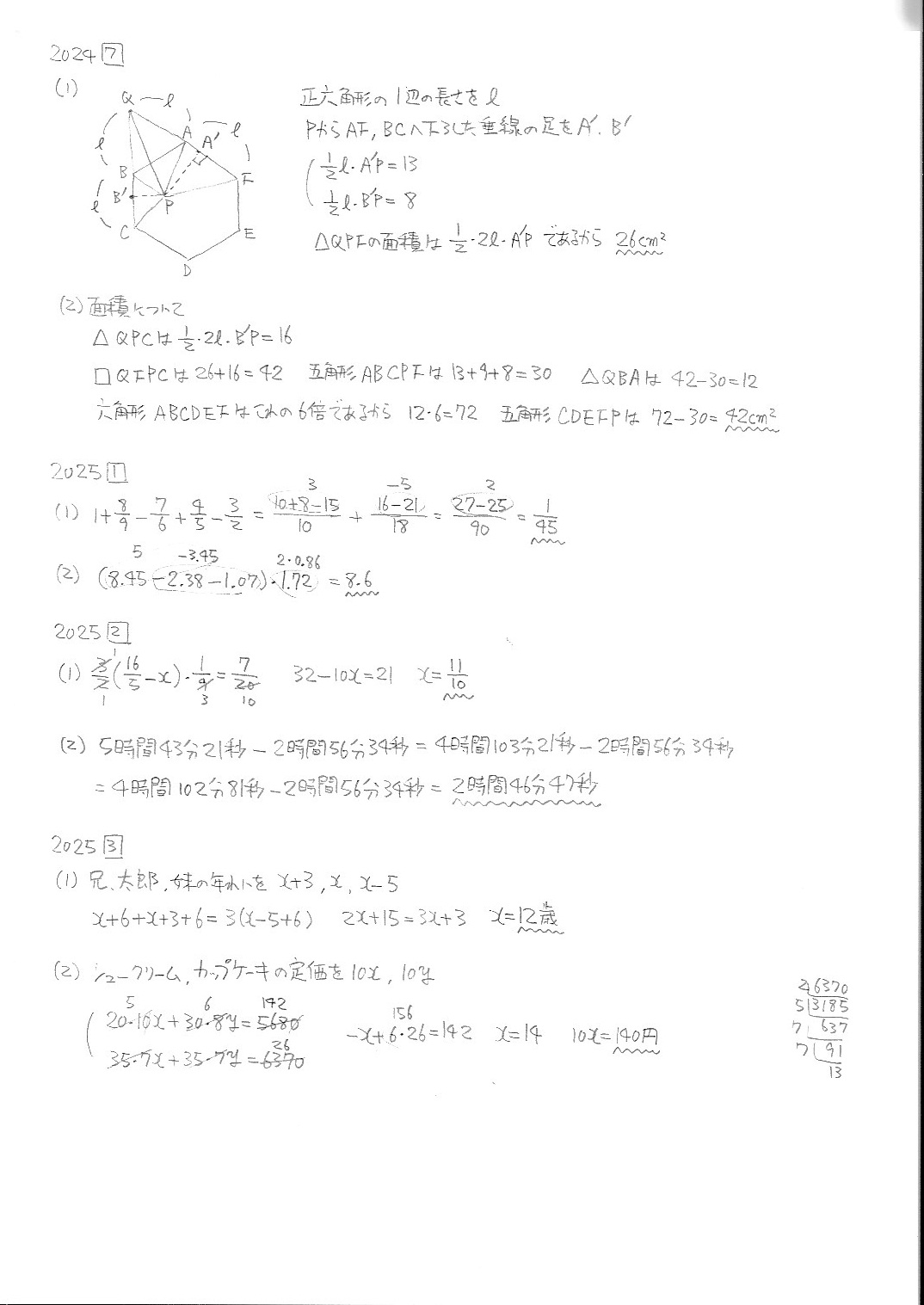 智辯学園和歌山中学校・前期・算数・2019年〜2025年