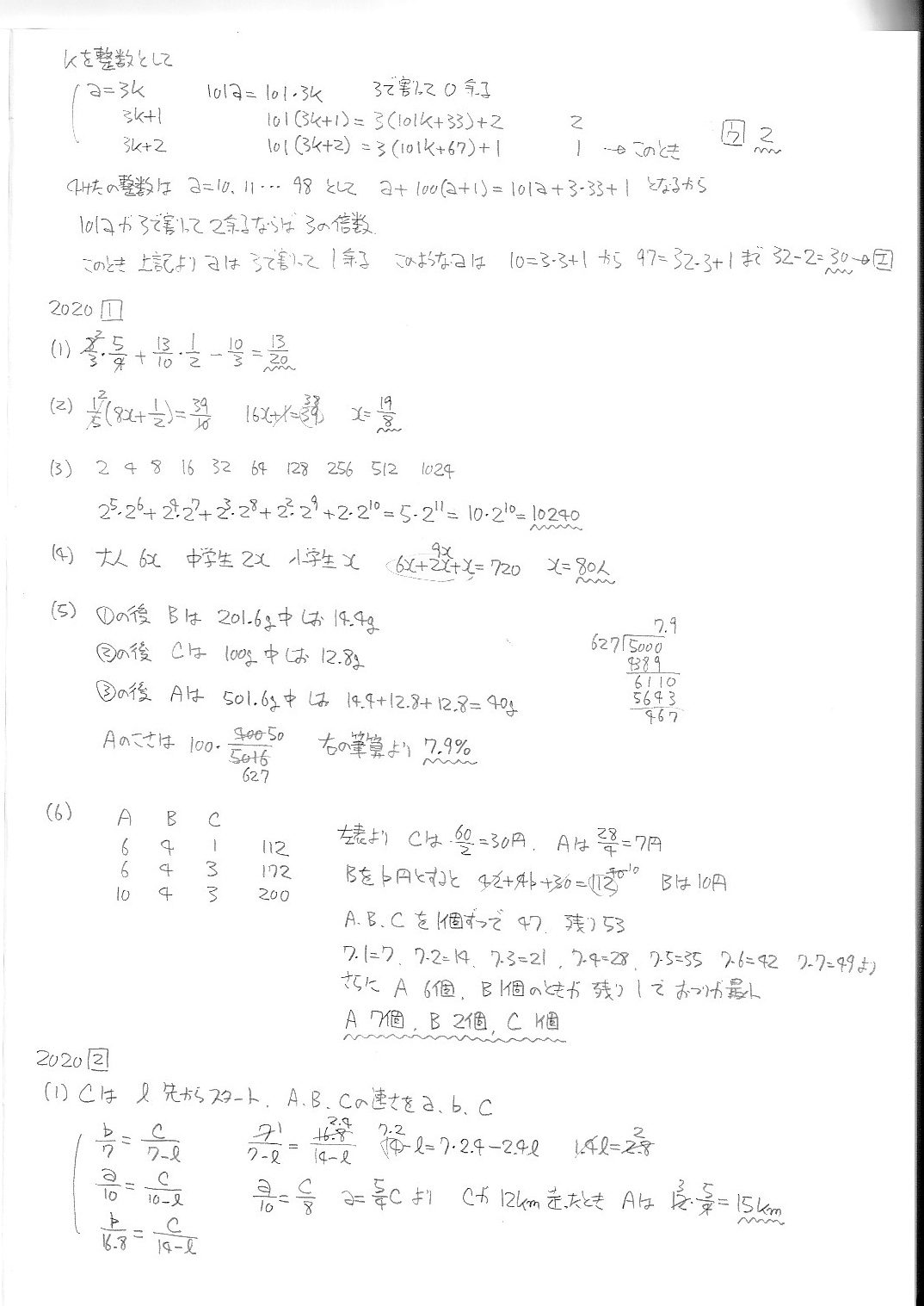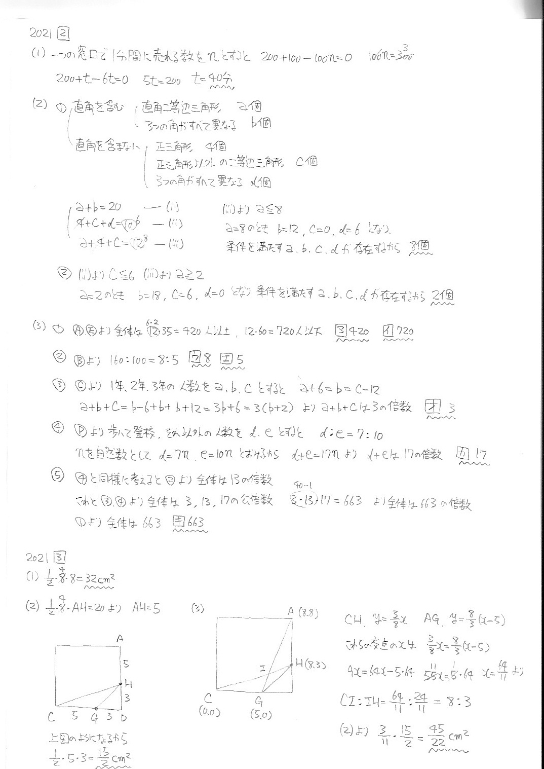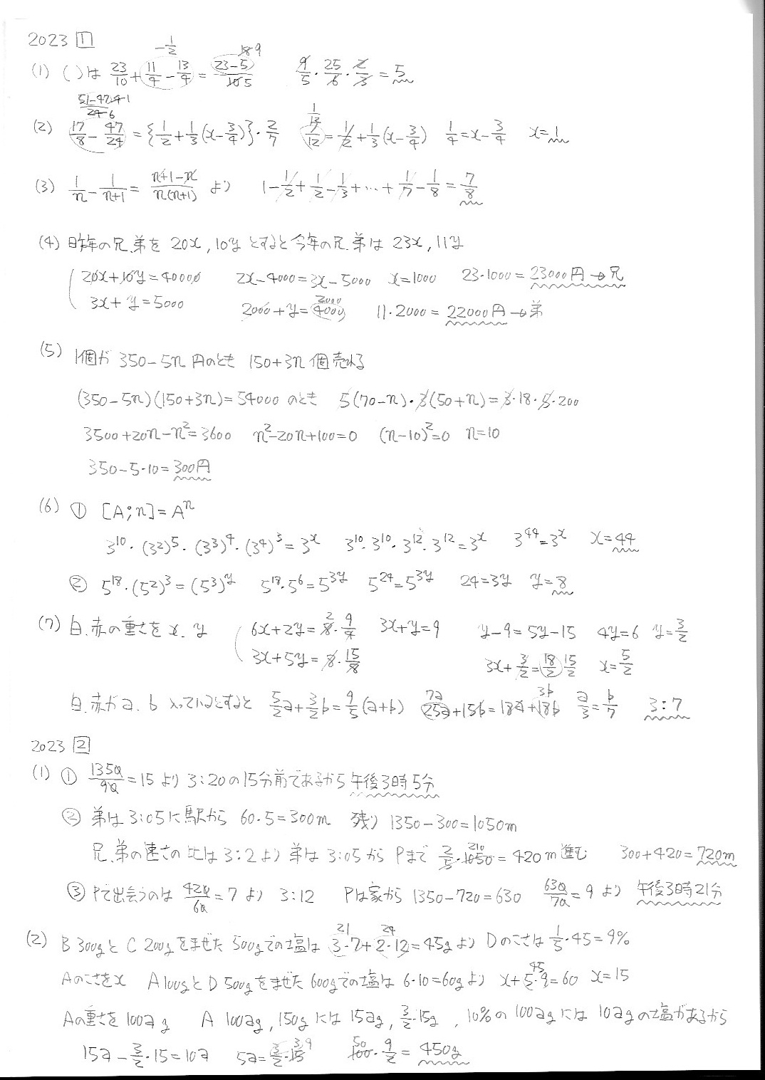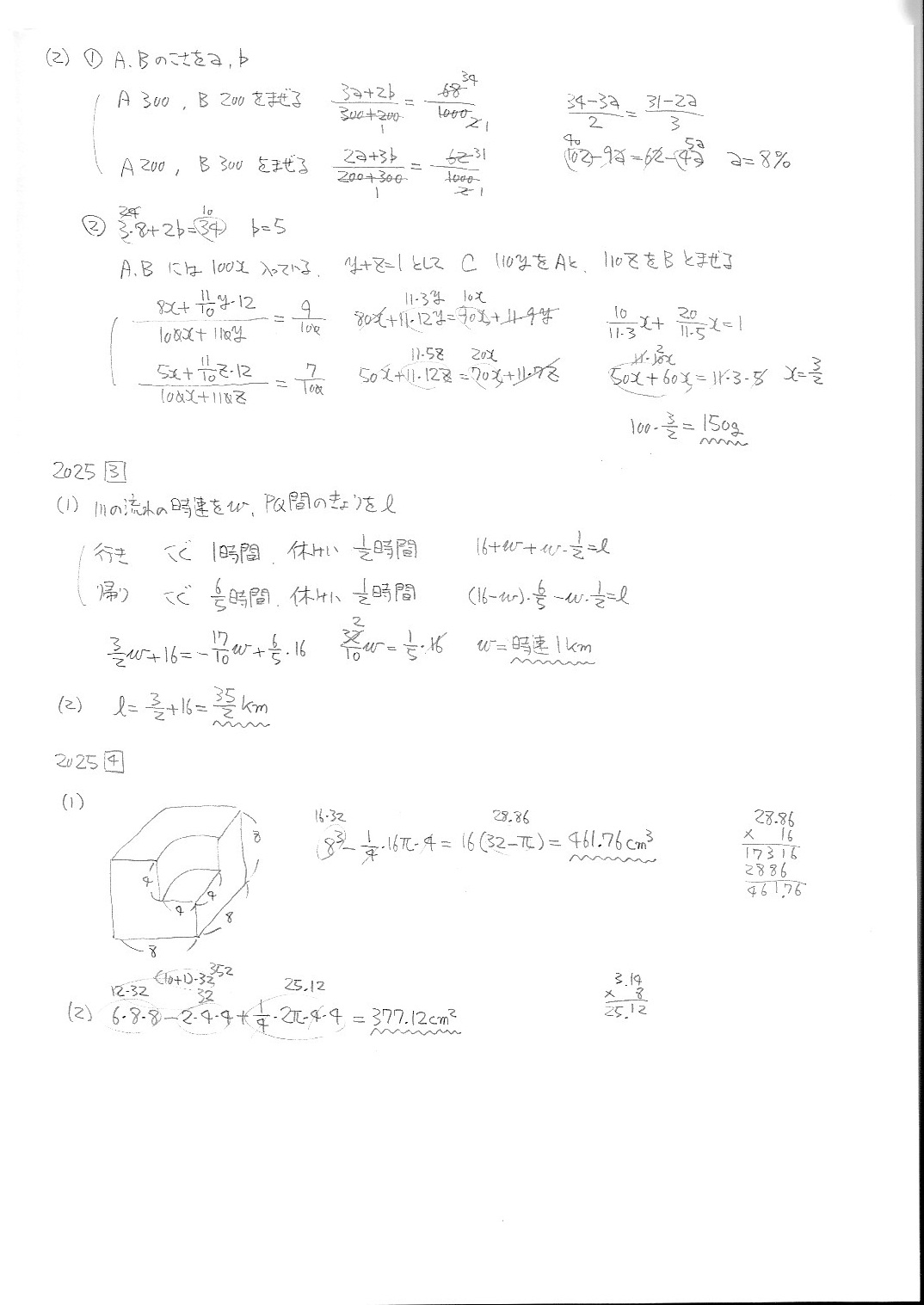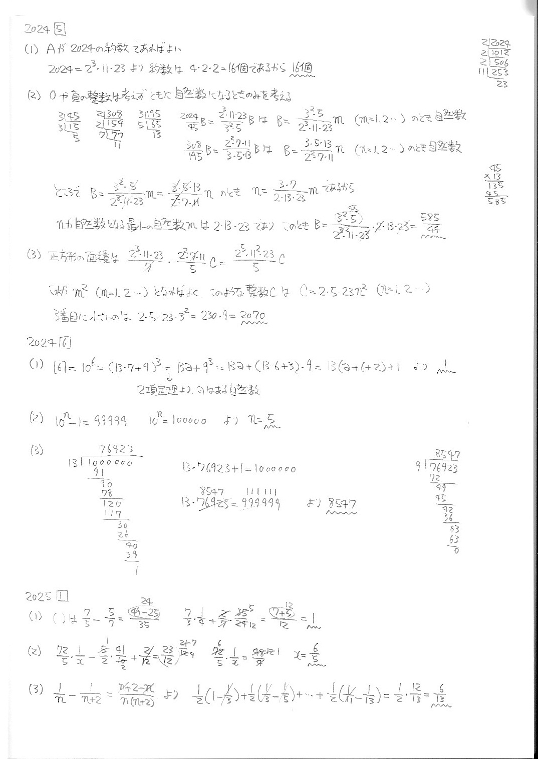 函館ラ・サール中学校・第1次・算数・2019年〜2025年