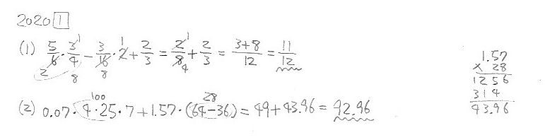 智辯学園和歌山中学校・前期 2020年度 算数 大問1