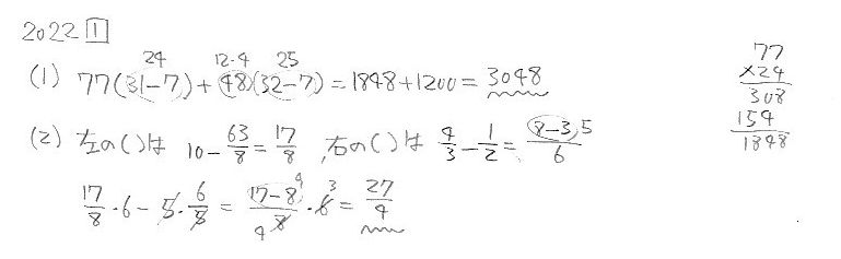智辯学園和歌山中学校・前期 2022年度 算数 大問1