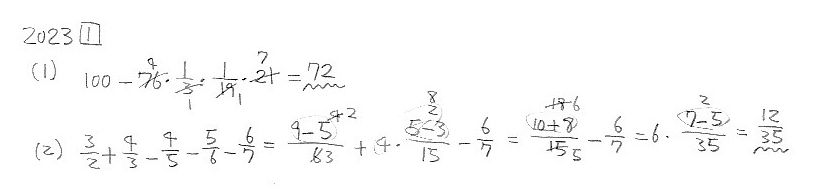 智辯学園和歌山中学校・前期 2023年度 算数 大問1