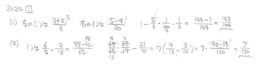 智辯学園和歌山中学校・前期 2024年度 算数 大問1