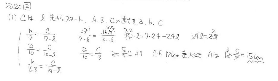 函館ラ・サール中学校・第1次 2020年度 算数 大問2