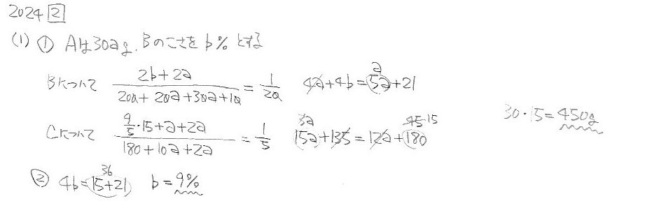 函館ラ・サール中学校・第1次 2024年度 算数 大問2
