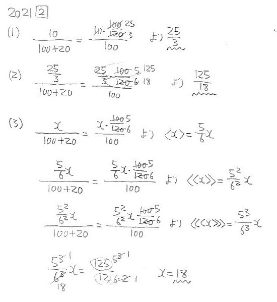 海城中学校・一般入試1 2021年度 算数 大問2