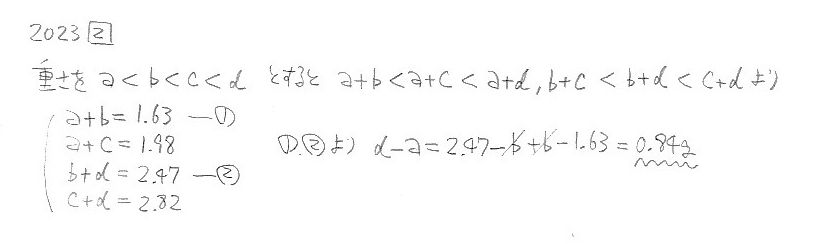 六甲中学校・A日程 2023年度 算数 大問2