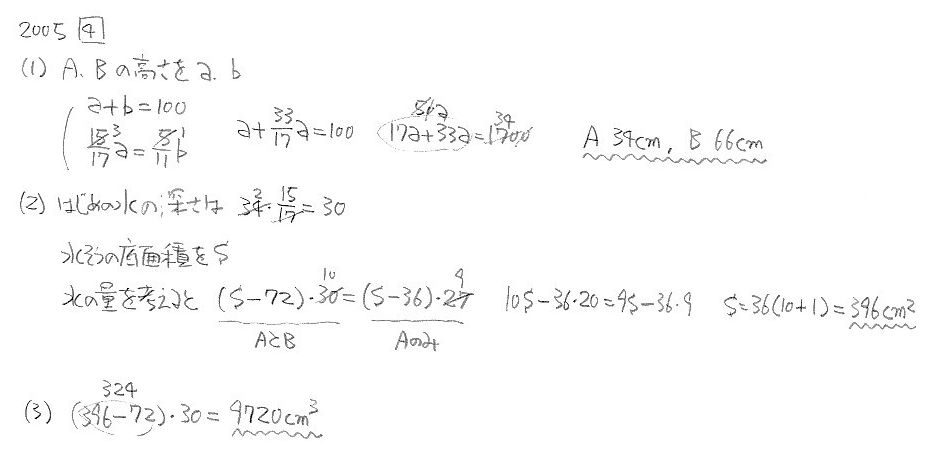 聖光学院中学校・第1回 2005年度 算数 大問4