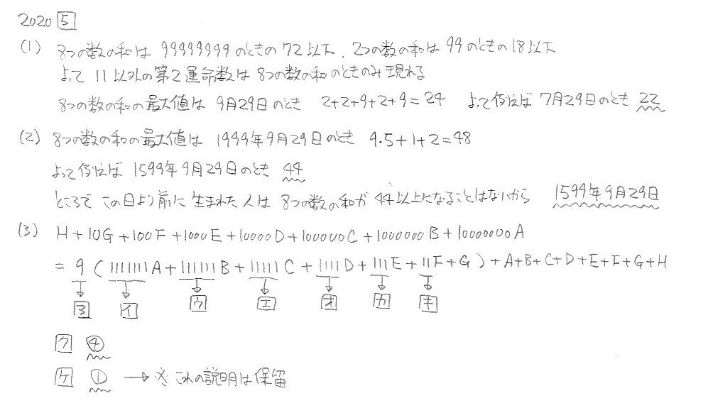 函館ラ・サール中学校・第1次 2020年度 算数 大問5