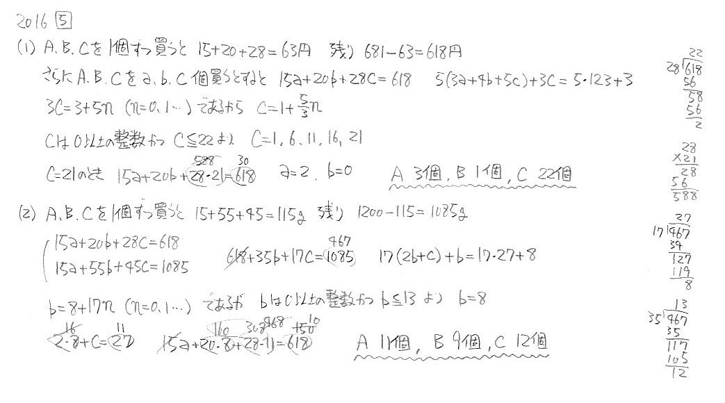 海城中学校・一般入試1 2016年度 算数 大問5