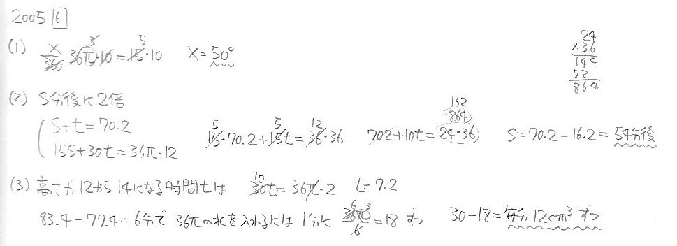 渋谷教育学園渋谷中学校・第1回 2005年度 算数 大問6