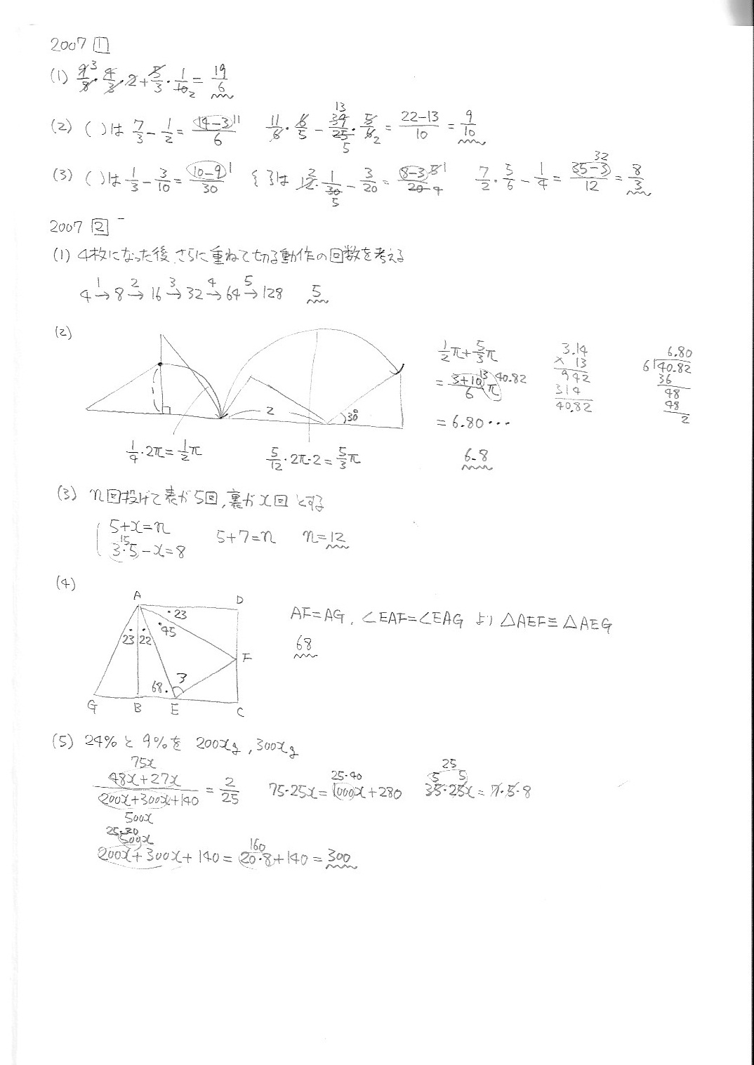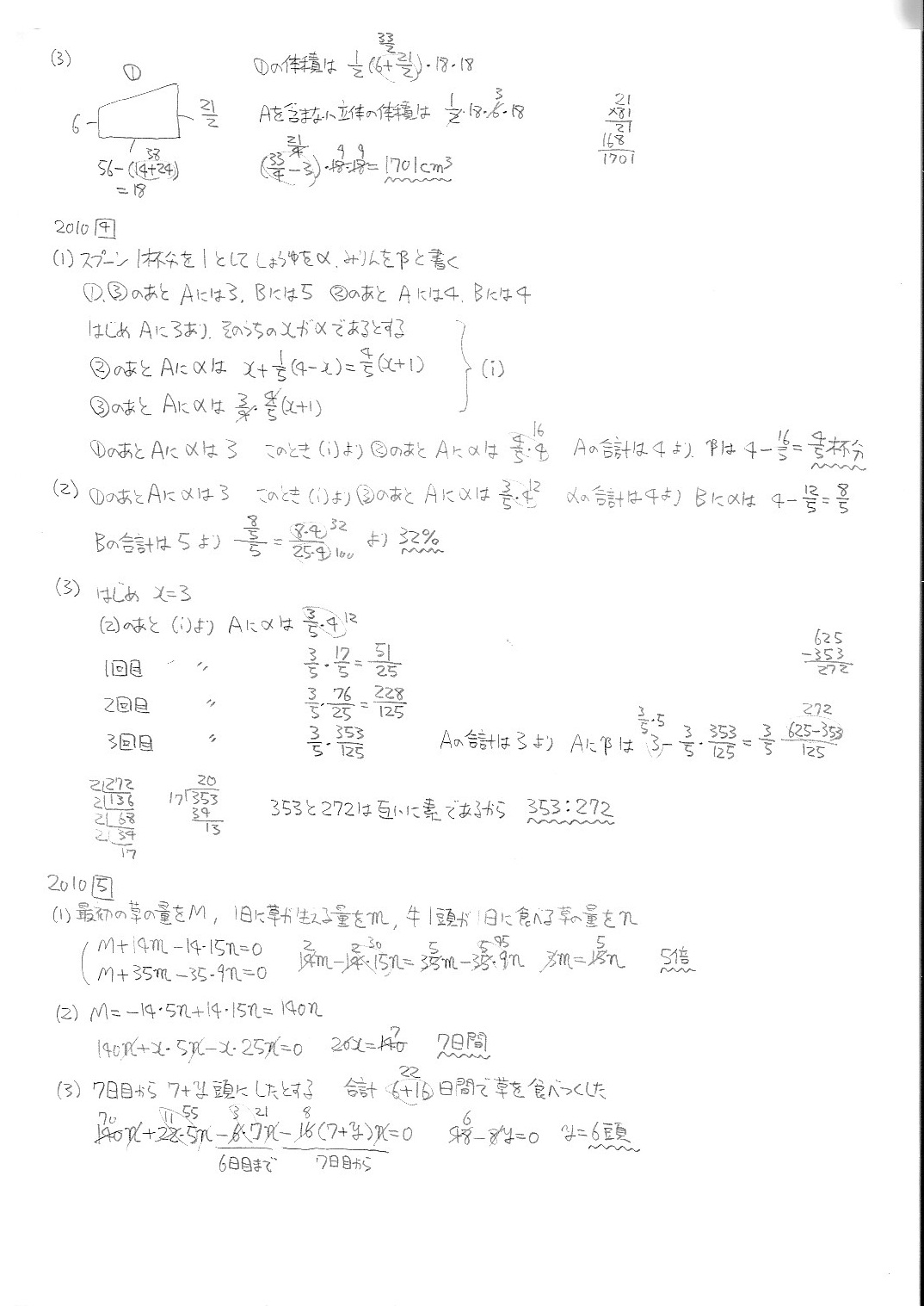 渋谷教育学園渋谷中学校・第1回・算数・2005年〜2010年